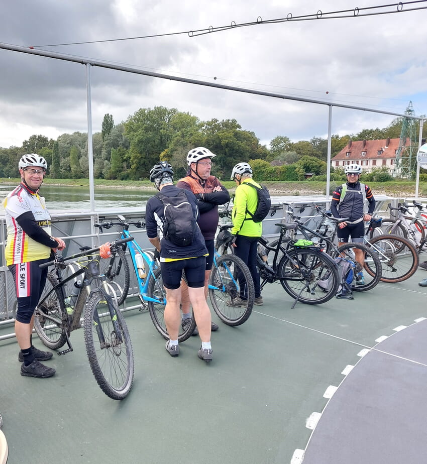 Gestartet sind wir in Langensteinbach, von wo aus die Route über Ettlingen und Mörsch nach Neuburgweier führte. Dort wartete das erste kleine Highlight der Tour: die Fährüberfahrt über den Rhein – Urlaubsfeeling pur. Auf der anderen Rheinseite ging es durch das idyllische Münchhausen und weiter entlang des Rheinradwegs in Richtung Seltz.