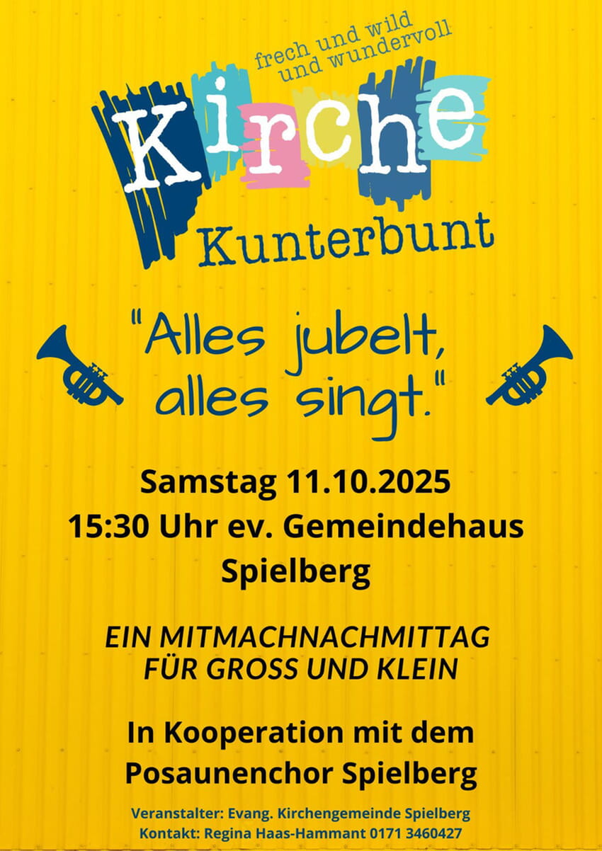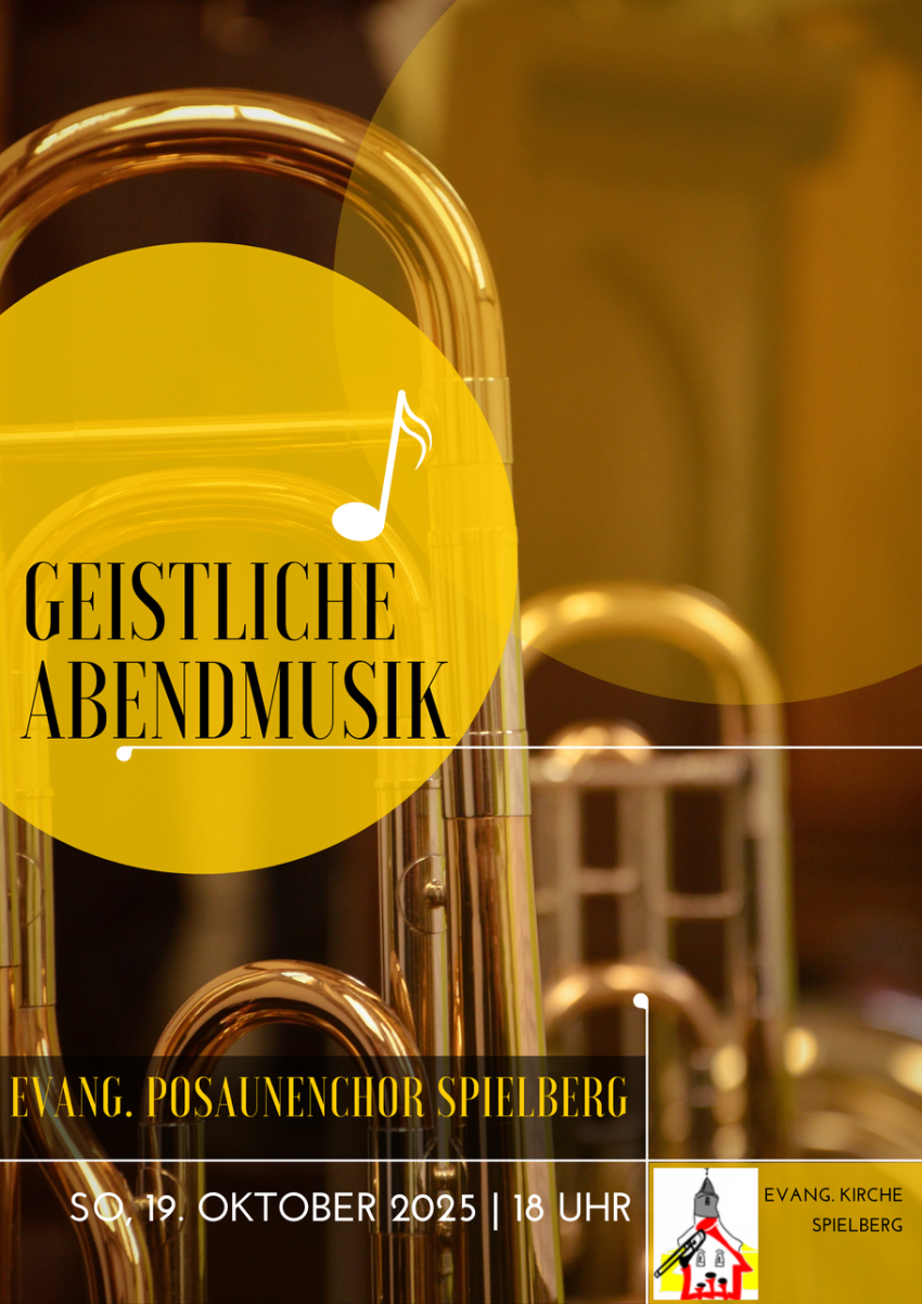 18.00 Uhr: Geistliche Abendmusik mit dem Evang. Posaunenchor Spielberg, Kirche. Kollekte: Telefonseelsorge. Vormittags findet kein zusätzlicher Gottesdienst statt!