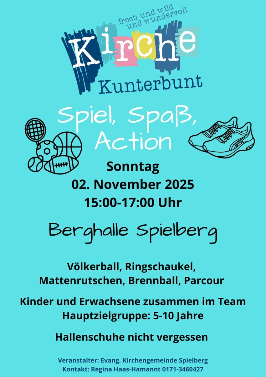 15.00 Uhr: Spiel, Spaß, Action – Kirche Kunterbunt in der Berghalle Spielberg