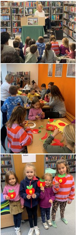 Nach dem Vorlesen konnten die Kinder entweder noch für unserer Malwettbewerb einen Baum des Lebens malen oder einen rotbackigen Apfel mit Würmchen aus einem Pappteller basteln.