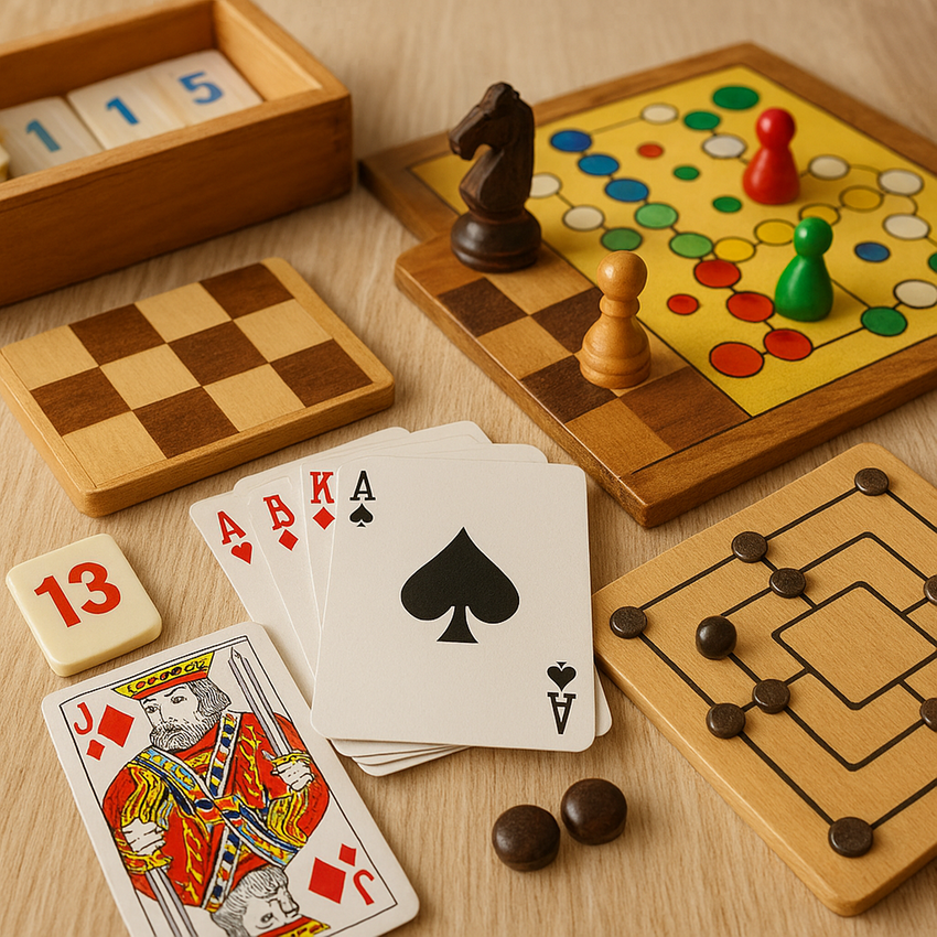 Freuen Sie sich auf eine gemütliche Runde mit beliebten Spielen wie Rommé, Mensch ärgere dich nicht, Mühle und vielem mehr.