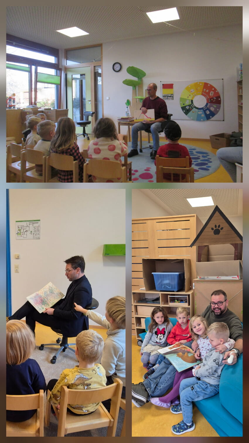 Ein besonderes Highlight der Woche war der Besuch von Eltern und unserem Bürgermeister Herrn Kornmüller, die mit großem Engagement verschiedene Geschichten vorlasen. Die Kinder hörten gespannt zu, stellten neugierige Fragen und ließen sich voller Begeisterung in die Welt der Bücher entführen.