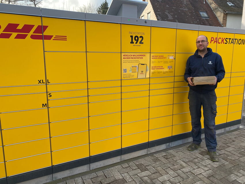 Es handelt sich um eine moderne Packstation, die bequem und einfach über die DHL-App bedient werden kann.