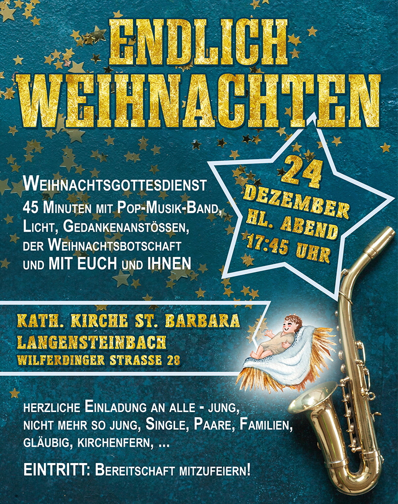 17:45 Langensteinbach Endlich Weihnachten – Weihnachtsgottesdienst mit Pop-Musik und frohen Gedanken-Anstößen