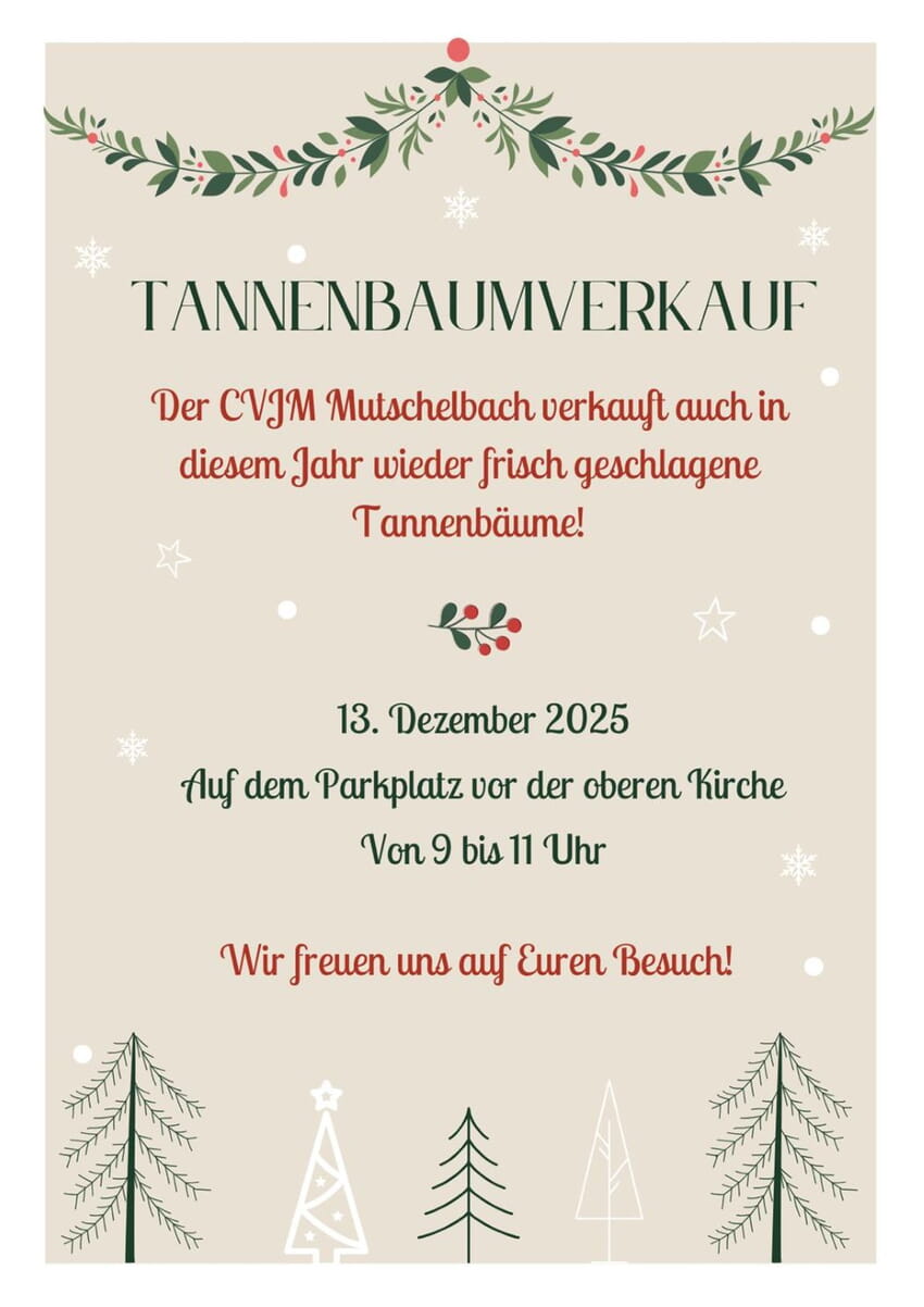 13.12.: Tannenbaumverkauf mit Orangenverkauf vor der oberen Kirche (9-11 Uhr)