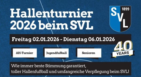 Der SVL veranstaltet direkt zum Jahresbeginn sein tradionelles Hallenfussballturnier. Fünf (!) Tage Hallenfussball mit Rundumbande satt. Von den Jüngsten (Bambini) bis zu den Alten Herren, von der C-Klasse bis zur Verbandsliga. An allen Tagen versorgt Sie unser Küchenteam in bewährter Art und Weise in der Schelmenbuschhalle. Besuchen Sie das älteste und immer noch angesagteste Hallenturnier in der Region.