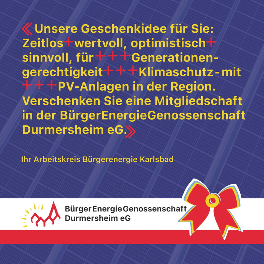 Das Jahr 2025 geht zu Ende und die Mitglieder des Arbeitskreis Bürgerenergie Karlsbad, die sich in der BürgerEnergieGenossenschaft Durmersheim eG (BEG) engagieren, blicken auf ein ereignisreiches, spannendes Jahr zurück: