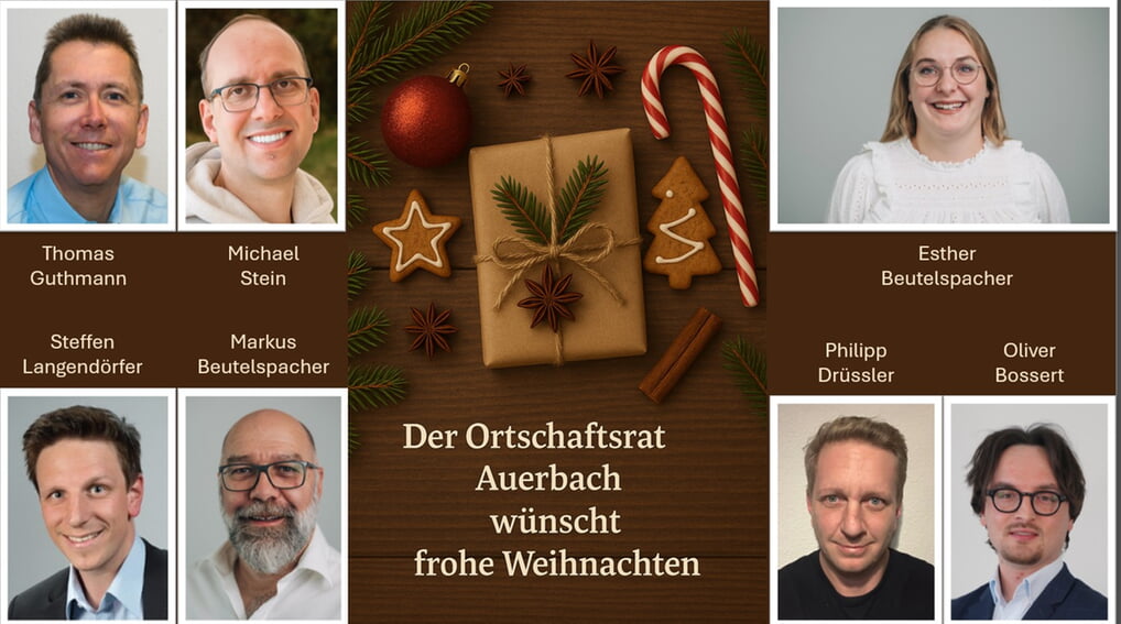in der festlichen Zeit wird spürbar, was unser Auerbach ausmacht: Zusammenhalt, Offenheit und viele kleine Gesten, die unser Dorf bereichern. Dafür möchten wir Ihnen herzlich danken.