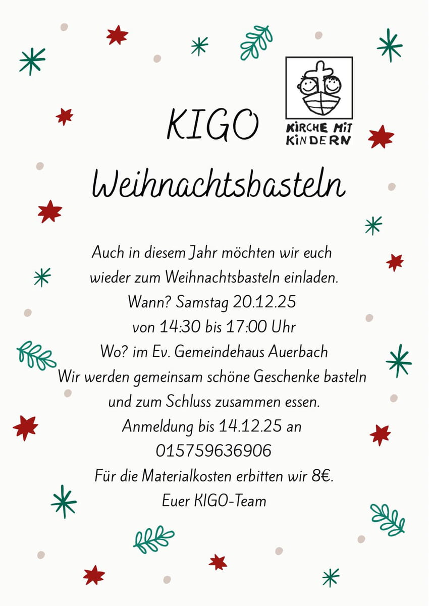 14.30 bis 17.00 Uhr Kigo und mehr: Weihnachtsbasteln im Gemeindesaal