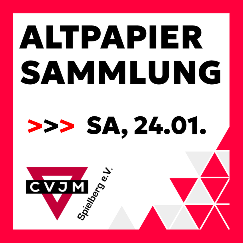 Schon jetzt vormerken: Unsere nächste Altpapiersammlung findet am SA, 24.01., statt.