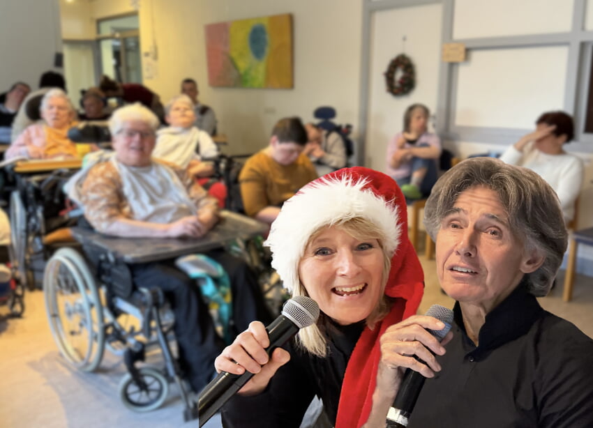 Ende Dezember gab es erneut ein Highlight für die Bewohnerinnen und Bewohner sowie die Tagesgäste im AWO Haus Spielberg. Carla und Michael waren gekommen, um die schwerbehinderten Menschen mit ihrer Musik und kleinen Geschichten auf die bevorstehenden Weihnachtsfeiertage einzustimmen. Das Duo, das durch die Volksmusikgruppe 'Die Schäfer' überregional bekannt wurde, versteht es, sein Publikum binnen Minuten in das Geschehen mit einzubinden. Mit ihrem altbekannten Intro 'In der Weihnachtsbäckerei' fühlten sich die Zuhörenden auch gleich in ihre eigene kleine Küche in den Tagesgruppen versetzt, es fehlte nur der vielversprechende aromatische Duft der weihnachtlichen Leckereien wie Zimtsterne oder Vanillekipferl aus dem Ofen. Gemeinsam besuchte man auch musikalisch einen Weihnachtsmarkt und blickte in die 'gute alte Zeit' zurück, als Weihnachten noch behaglicher und weniger konsumorientiert war. Alles in allem ein gelungener Nachmittag, an dem jeder Freude hatte.
