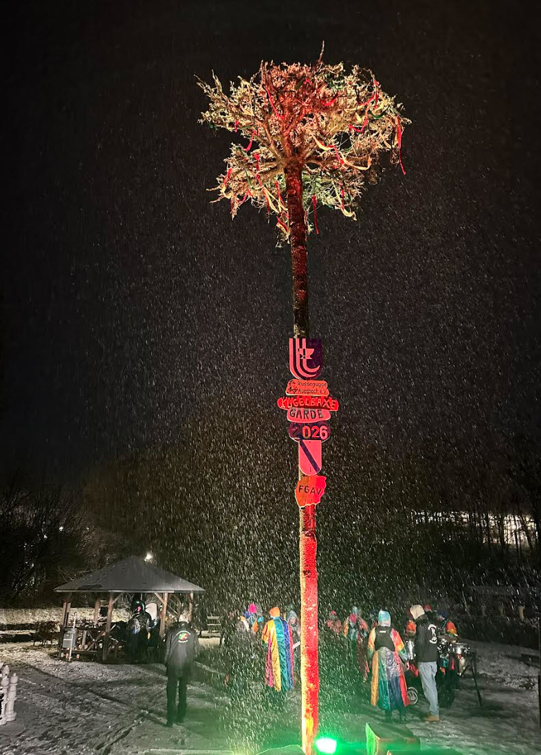 Unser Narrenbaum steht seit vergangenem Samstag und verziert nun bis Aschermittwoch den Rudolf-Kohl-Platz hinter dem Auerbacher Rathaus. Nach einem kleinen Umzug wurde dieser von Präsident Christian Zechiel an seinem Bestimmungsort getauft und läutet damit die heiße Phase der Kampagne ein. Nach der offiziellen Zeremonie wurde mit der Partyband "Herzblatt" in der Talblickhalle gefeiert. Wir bedanken uns bei allen Besuchern sowie bei den Guggenmusikern der "Stobblhobblä" aus Forst sowie bei "Herzblatt" für die musikalische Unterstützung. Herzlichen Dank auch an die Jungs vom SV-Langensteinbach für den Bardienst, die freiwillige Feuerwehr Auerbach für die Straßensicherung und unserem Narrenbaumminister Thomas Wölker sowie Harald Mende für die technische Unterstützung!