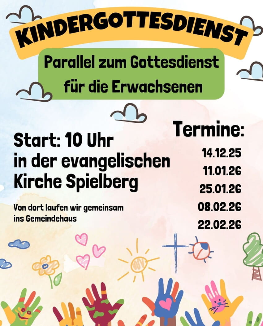 Seit Dezember gibt's jeden 2. Sonntag auch endlich wieder was für die Kids: Wir treffen uns zum Kindergottesdienst, der parallel zum Gottesdienst für Erwachsene stattfindet.