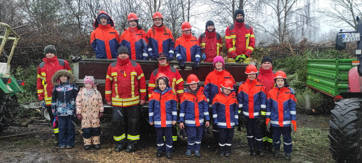Bereits in den frühen Morgenstunden trafen sich die Kinder und Jugendlichen gemeinsam mit ihren Betreuerinnen und Betreuern am Feuerwehrhaus. Gut organisiert und motiviert machten sich die Teams, trotz widriger Wetterbedingungen, auf den Weg die bereitgelegten Tannenbäume einzusammeln. Unterstützt wurden sie dabei von Mitgliedern der Einsatzabteilung.