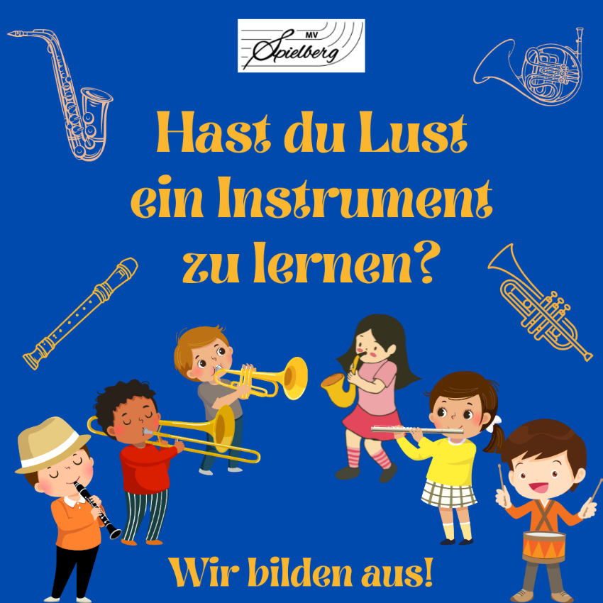 Ihr Kind hat Lust, ein Instrument zu lernen und Teil einer tollen Gemeinschaft zu werden? Dann starten Sie jetzt die musikalische Ausbildung beim Musikverein Spielberg. Von den ersten Tönen auf dem Instrument bis zum Mitspielen im Orchester bieten wir eine vielseitige und fundierte Ausbildung an.