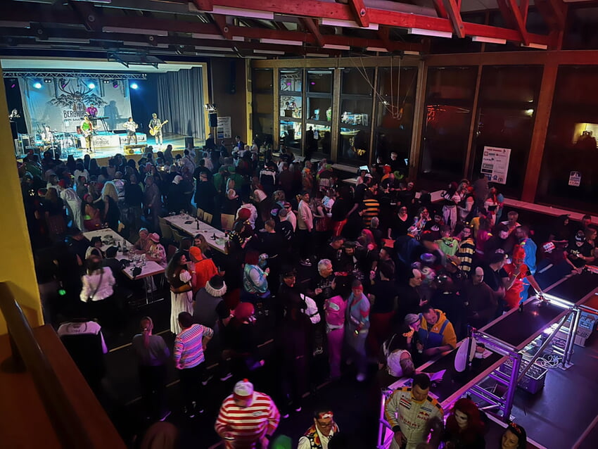 Bereits um 19:31 Uhr öffnete die Berghalle ihre Türen und füllte sich rasch mit gut gelaunten Gästen. Die Vorfreude lag spürbar in der Luft, und spätestens ab kurz vor 21 Uhr sorgten die Berghirsche mit ihrer Musik für eine überragende Stimmung in der Halle.
