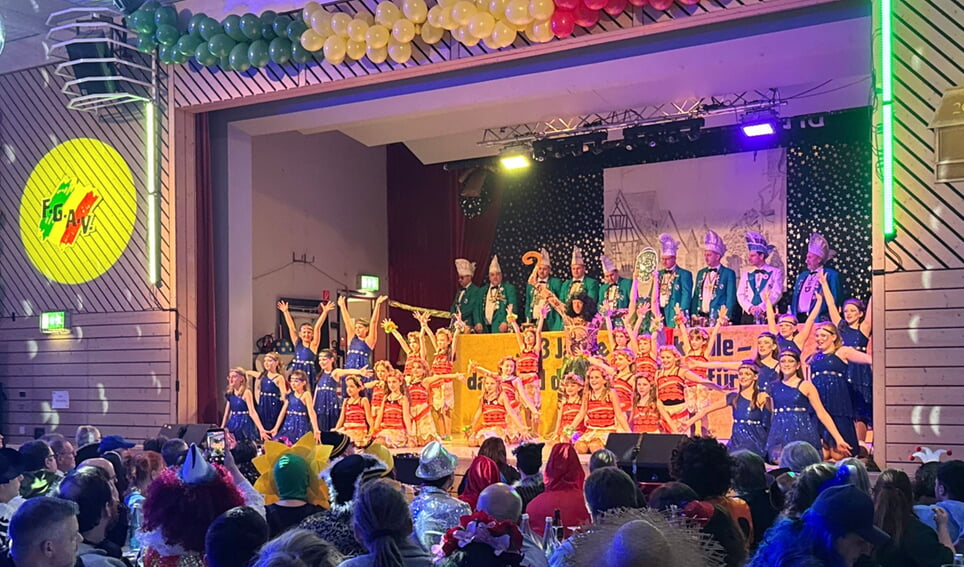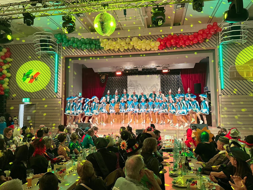 Stimmungskanone Marius Neumann – verstärkt mit Aeneas Kleiner und Steffen Langendörfer – heizten im Anschluss zum Flippers-Medley weiter ein. Die FGAV-Sternengarde reiste bei ihrem Showtanz einmal quer durch Deutschland und sorgte ebenso für Begeisterung wie die Elferräte, die mit ihrem Showauftritt die Rockstars der vergangenen Jahrzehnte eindrucksvoll wiedererweckten und die Halle zum Beben brachten. Das große Finale gehörte den Mädels der FGAV-Funkengarde: Mit ihrem Showtanz „Jahrmarkt der Illusionen“ sorgten sie mit ihrem fantastischen Tanz für den perfekten Schlusspunkt zum stimmungsvollen, kurzweiligen und unterhaltsamen Programm, das alle Aktiven auf die Bühne der Talblickhalle gezaubert haben.