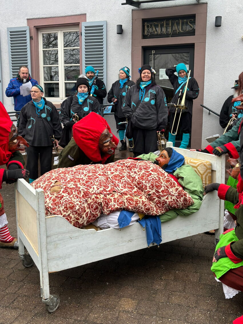 Seit dem Dreikönigstag herrschte in Ittersbach der Ausnahmezustand – und das im besten Sinne! Mit dem traditionellen Narrenwecken wurde unsere fünfte Jahreszeit offiziell eingeläutet. Nach rund zehn Monaten Ruhephase wurde der schlafende Narr von Jaköblen, Stöckmädlen, Hexen und den kraftvollen Klängen der Gugguggsguggen standesgemäß zum Rathausplatz begleitet. Unter lautem Jubel reckte und streckte er sich – und spätestens in diesem Moment war klar: jetzt gibt es kein Zurück mehr, die Fasnet ist zurück im Ort!