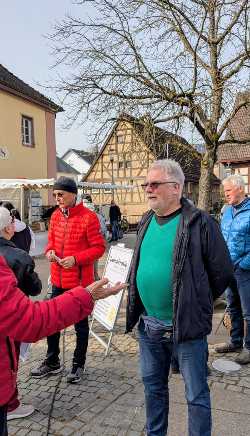 Bei strahlendem Sonnenscherin und angenehmen Temperaturen konnten wir am Freitag vor der Wahl auf dem Wochenmarkt in Langensteinbach ein starkes Zeichen für die Demokratie setzen. Kurz vor der Landtagswahl am 8. März war die Resonanz fantastisch: Wir haben viele engagierte Bürgerinnen und Bürger getroffen und spannende Gespräche geführt, die zum überwiedgenden Teil von großem gegenseitigen Respekt geprägt waren. Dieser direkte Austausch vor Ort hat einmal mehr gezeigt, wie wichtig das Gespräch auf Augenhöhe ist. Neben unserer Flyern stießen besonders die Grundgesetz-Ausgaben auf großes Interesse - ein schönes Symbol für das Fundament, auf dem unser friedliches Zusammenleben steht. Es war inspirierend zu erleben, wie viele Menschen in Karlsbad bereit sind, Verantwortung für unser Gemeinwesen zu übernehmen. Nun da die Wahllokale geschlossen sind und die Stimmen ausgezählt wurden, möchten wir uns herzlich bei allen Wählerinnen und Wählern bedanken, die von ihrem Stimmrecht Gebrauch gemacht haben.