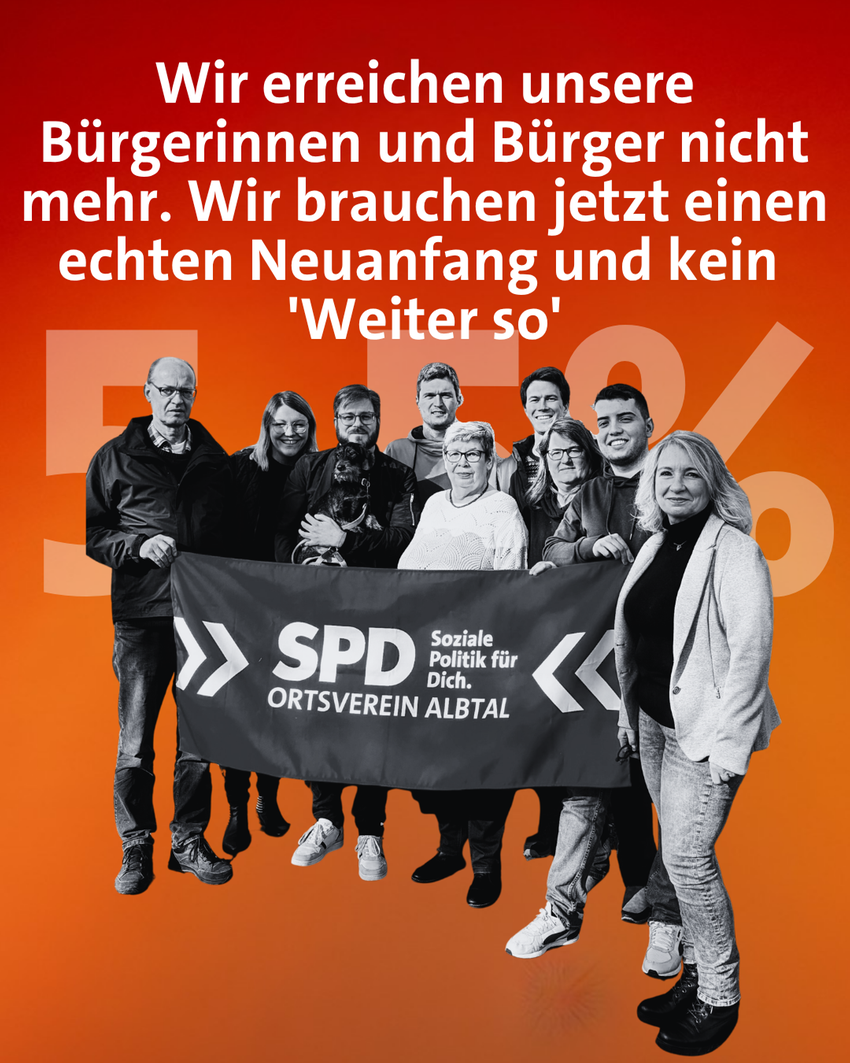 Wir sagen es, wie es ist: Wir erreichen viele Menschen da draußen nicht mehr. Ein „Weiter so“ ist für uns keine Option. Die letzte Landtagswahl war für uns ein Weckruf, den wir im Albtal ernst nehmen.