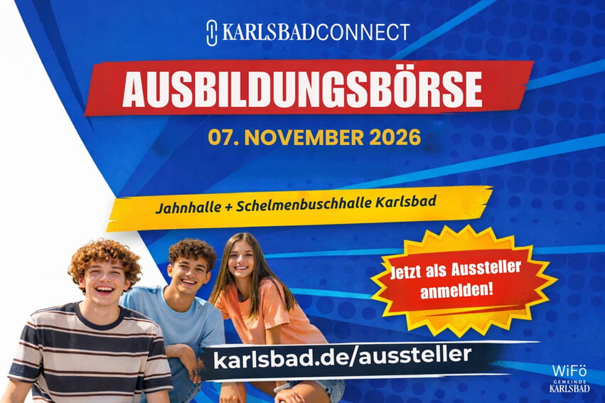 Nach der erfolgreichen Premiere im vergangenen Jahr stehen die Zeichen für den Ausbildungsstandort Karlsbad auf Wachstum. Am 7. November 2026 geht die KarlsbadConnect Ausbildungsbörse in die zweite Runde. Aufgrund der enormen Nachfrage vonseiten der Unternehmen vergrößert die Gemeinde die Ausstellungsfläche im Schulzentrum um ein komplettes Hallendrittel. Seit dem 1. April ist das Anmeldeportal für alle interessierten Betriebe geöffnet.