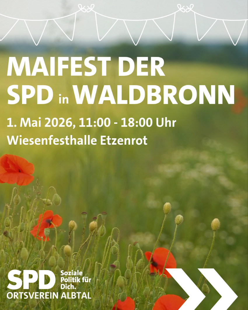 Am 1. Mai ist es wieder so weit: Der SPD-Ortsverein lädt alle Bürgerinnen und Bürger aus Waldbronn und Umgebung herzlich zu unserem traditionellen Maifest in Etzenrot ein. Freut euch auf einen geselligen Tag für die ganze Familie!