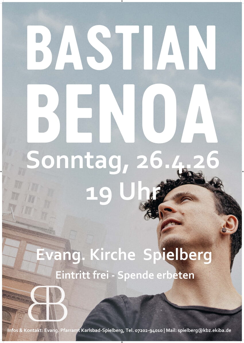 19.00 Uhr: Konzert mit Bastian Benoa, Kirche. Eintritt frei – Spende erwünscht.