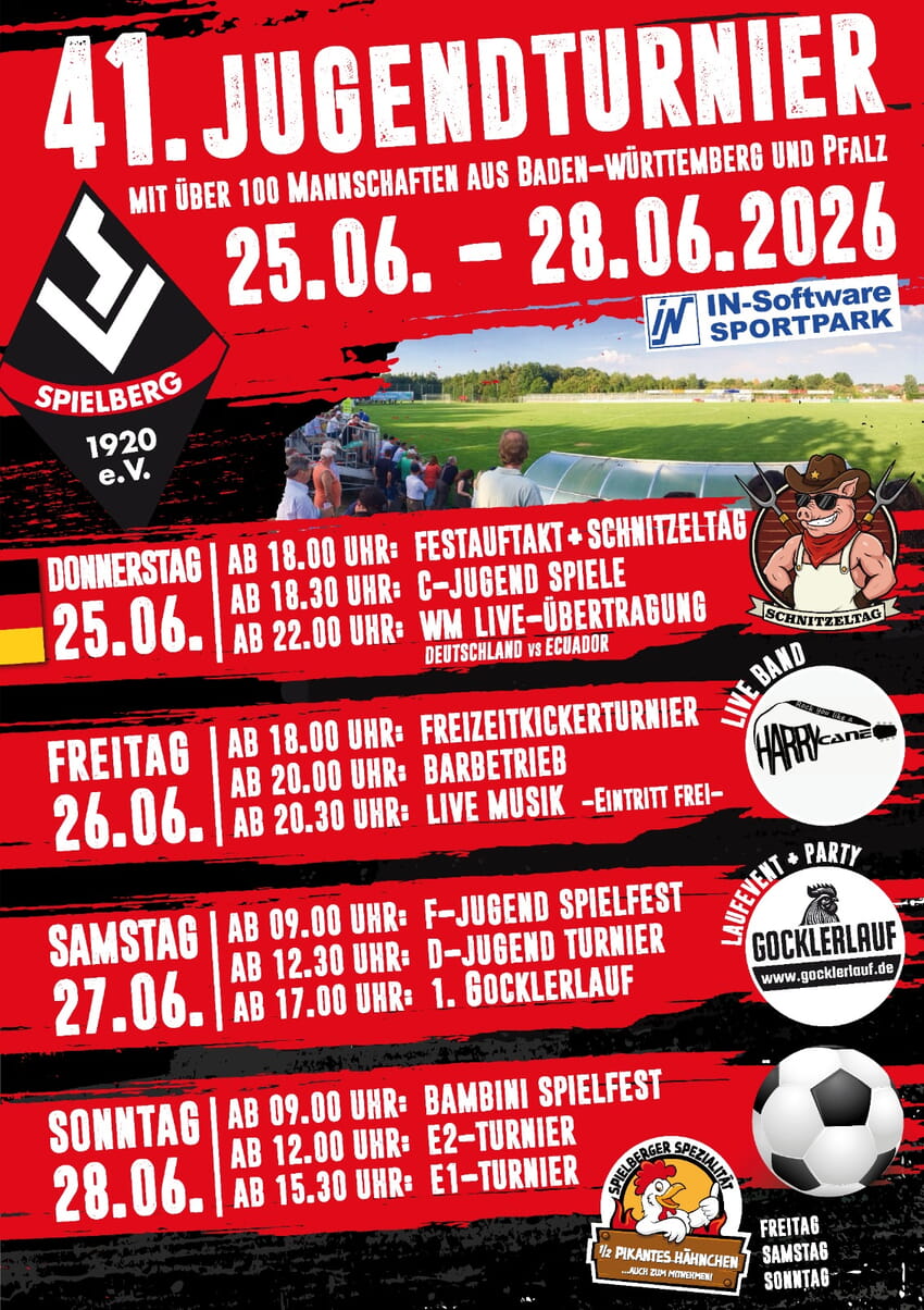 Das 41. Jugendturnier findet vom 25.-28.06.2026 statt und bietet auch in diesem Jahr wieder einige Turniere, Events und Neuheiten!Weitere Infos folgen!