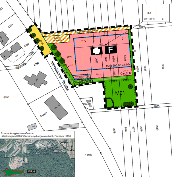 Zum Bebauungsplangebiet gehört die externe Fläche WR 6 als Ausgleichsmaßnahme.