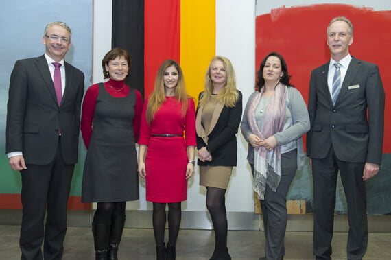 Im Jahr 2015 haben 452 Personen im Landratsamt ihre Einbürgerungsurkunde erhalten und damit mehr als in den vergangenen Jahren, in denen durchschnittlich jeweils 400 Personen eingebürgert wurden. Um diesen Anlass zu würdigen, lädt Landrat Dr. Christoph Schnaudigel traditionell die Neubürgerinnen und Neubürger zu einer Feier ins Landratsamt nach Karlsruhe ein. Die vielen Gäste, darunter auch Familie und Freunde der Eingebürgerten sowie viele Bürgermeister und Vertreter der Städte und Gemeinden, erlebten am Donnerstag, 18. Februar im Foyer des Landratsamtes einen eindrucksvollen Abend, der unter anderem von den Neubürgerinnen und Neubürgern mit persönlichen Beiträgen mitgestaltet wurde. Bürgermeister Jens Timm freute sich zusammen mit den vier Eingebürgerten aus Karlsbad: Edit Judit Binder, Ivana Kramer, Cloudia Shmouei, Christine Gaewski. Kristina Binder und Stylianos Kirtzakis wird die Feier besonders im Gedächtnis bleiben: Sie erhielten „live“ ihre Urkunden, die sie überall auf der Welt als deutsche Staatsbürger ausweisen, nachdem sie den Treueeid auf die Bundesrepublik Deutschland geleistet hatten. „Die Einbürgerung ist formal ein Verwaltungsakt, aber mit der Feier wird die Bedeutung dieses Ereignisses gebührend hervorgehoben. Heute Abend haben Sie auch die Gelegenheit, mit anderen Menschen, die wie sie die deutsche Staatsbürgerschaft angenommen haben, ins Gespräch zu kommen und sich auszutauschen, wie sie das Leben in Deutschland als neue Heimat erleben und wie sie sich im Beruf oder in der Freizeit in Vereinen oder Initiativen engagieren“, ermunterte Landrat Dr. Christoph Schnaudigel. Larissa Hartmann, Joanna Dorota Urbas-Rogner, Caroline Elizabeth White-Göttsche und Cloudia Shmouee nahmen den Landrat beim Wort und schilderten in Programmbeiträgen ihre Beweggründe und Erfahrungen, die letztlich in die deutsche Staatsbürgerschaft mündeten. Die Eingebürgerten stammen aus Algerien, Bosnien-Herzegowina, Brasilien, China, England, Eritrea, Finnland, Frankreich, Indien, Irak, Iran, Italien, Georgien, Griechenland, Kasachstan, Kirgistan, Kolumbien, Kongo, Kroatien, Kuba, Mazedonien, Mexiko, Niederland, Nigeria, Pakistan, Polen, Portugal, Rumänien, Russland, Spanien, Tschechien, Türkei, Tunesien, Ukraine, Ungarn und Usbekistan.